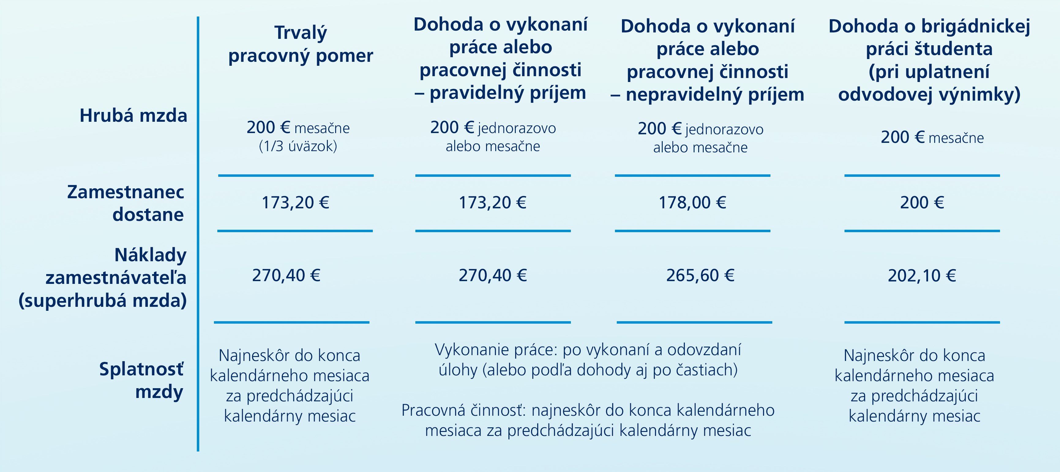 Koľko vás bude stáť dohodár, keď mu zaplatíte 200 € v hrubom, a prečo príde na účet študentovi viac peňazí ako napr. bežnému zamestnancovi? Odpoveď nájdete v tomto prehľadnom porovnaní mzdových nákladov rôznych dohodárov a zamestnancov.