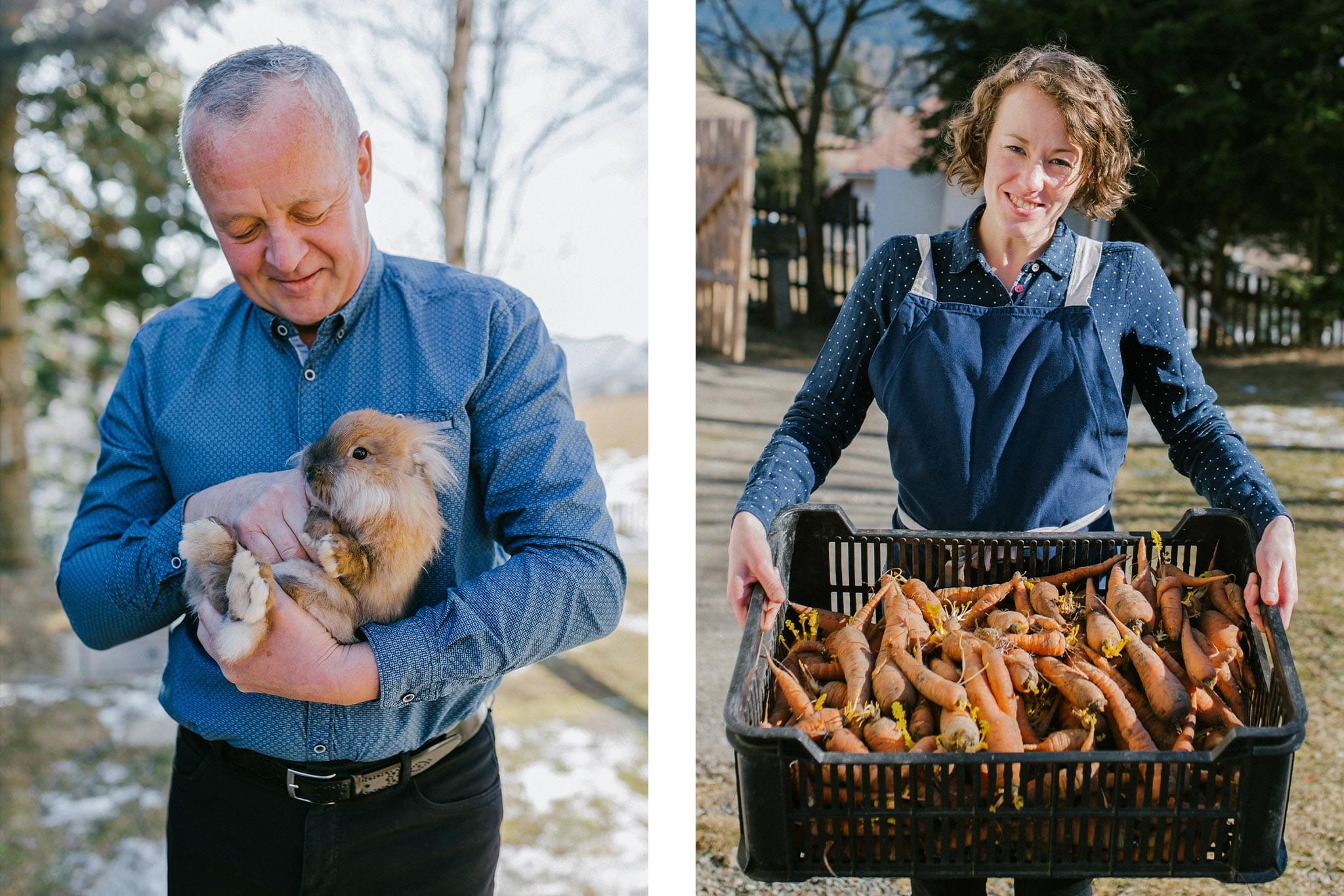 Ľubomír: Ako rodina máme 40 hektárov pôdy. Z toho vychádzame. O pôdu a zvieratá, ktoré na nej žijú – kravy, ovce, kozy, prasiatka, sliepky, mačka Valéria a na ozdobu zajačiky -, sa treba postarať. To robia naši dvaja synovia.
