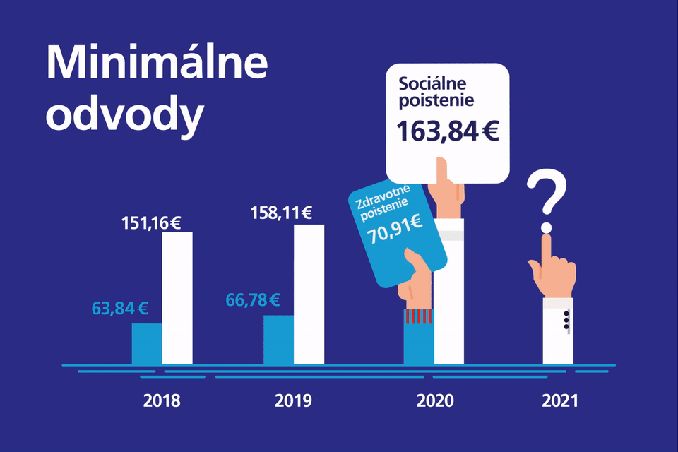 Minimálna výška odvodov do Sociálnej poisťovne na rok 2019 je 158,11 € a na rok 2020 bude 167,89 € mesačne. Maximálna výška odvodov bude 2 350,66 €. Ak sa vám zmení výška odvodov, bude vás o tom vždy priamo informovať Sociálna poisťovňa, ktorá vám presne určí novú výšku odvodov aj deň, od ktorého ich budete platiť.