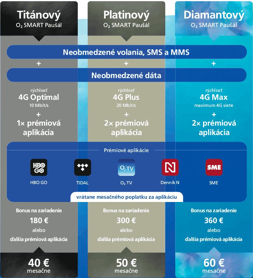 Ak aj vy patríte k podnikateľom, ktorí sú vďační za každú dostupnú pomoc, urobte si zo smartfónu skutočného pracovného pomocníka. Aby ste ho však dokázali naplno využiť, potrebujete veľké množstvo dát na aplikácie, ktoré to umožnia. O2 má pre vás riešenie, vďaka ktorému sa už nebudete musieť obmedzovať. Titánový O2 SMART Paušál vám ponúka okrem neobmedzených dát, volaní, SMS a MMS aj predplatné aplikácií, ktoré si môžete variabilne vybrať tak, aby maximálne uľahčili váš biznis.