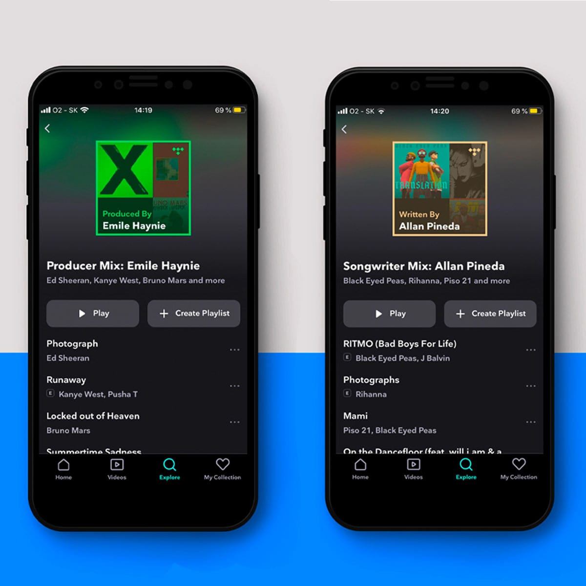 Zaujímavé playlisty sú aj pod označením Produced by a Written by, ktoré združujú zdanlivo nesúvisiace skladby, ktoré však produkoval alebo napísal rovnaký človek. Napríklad v playliste pesničiek, ktoré napísal Allan Pineda, nájdete Rihannu, Black Eyed Peas či Davida Guettu a v playliste producenta Emila Haynieho si vypočujete hity od Eda Sheerana, Kanye Westa či Bruna Marsa.
