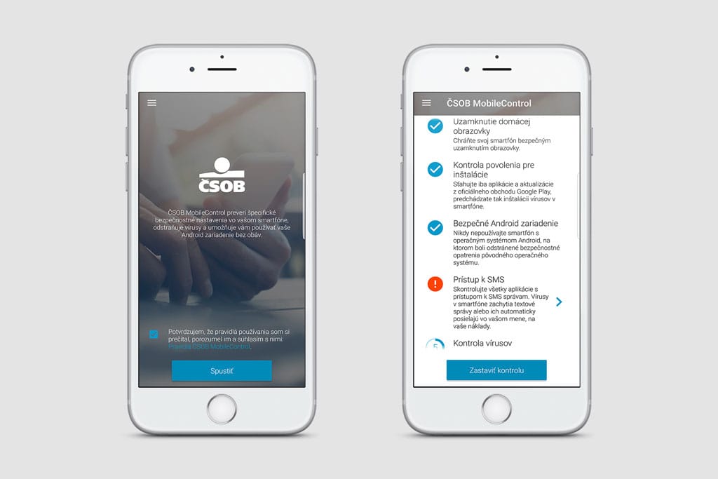 Ak si v ČSOB založíte účet, dostanete k nemu bezplatne bezpečnostnú aplikáciu ČSOB MobilControl, ktorá skontroluje uzamknutie obrazovky vášho telefónu, jeho bezpečnostné nastavenia aj nainštalované aplikácie a ich povolenia. Spolu s aplikáciou navyše získate aj výhodnejšiu cenu na bezpečnostné riešenia od spoločnosti ESET.
