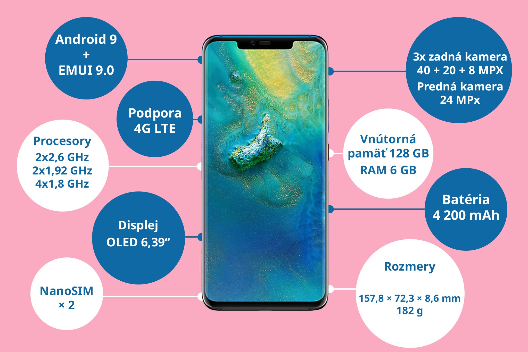 Huawei Mate 20 Pro môžete mať k O2 Paušálu alebo k O2 Dátam na začiatok od 2 €. Ak sa rozhodnete pre vylepšený Zlatý alebo Platinový O2 Paušál, získate k neobmedzeným volaniam a SMS do všetkých sietí na Slovensku a v EÚ aj päťkrát viac dát, vďaka čomu už nebudete musieť neustále strážiť svoju spotrebu.