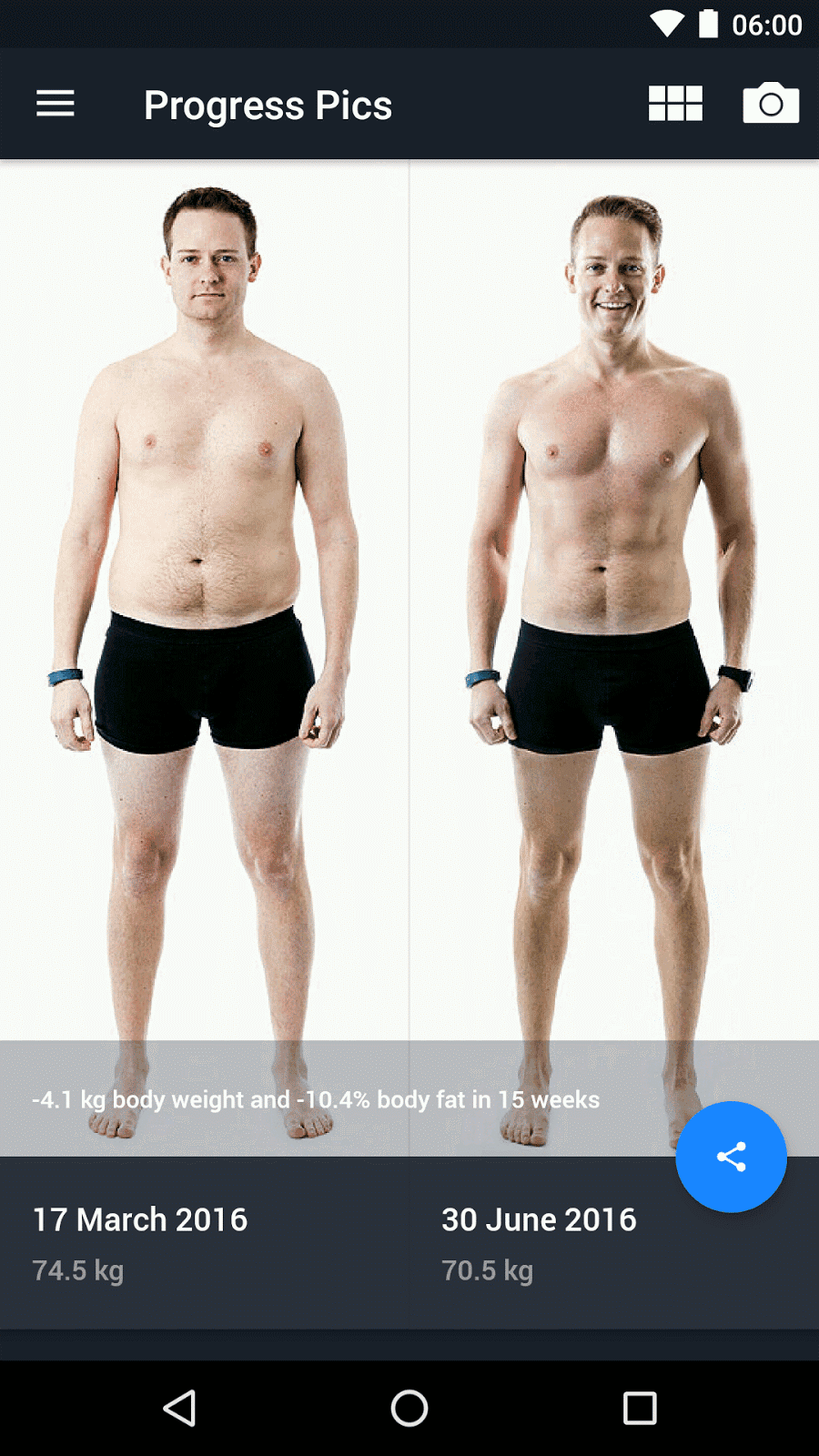 Teraz si môžete kontrolovať svoje napredovanie, a to tak, že sa budete pravidelne fotografovať. Svoje zábery si môžete nechať pre seba alebo sa môžete o svoje úspechy deliť s priateľmi na sociálnych sieťach a zároveň tak motivovať seba i ostatných.