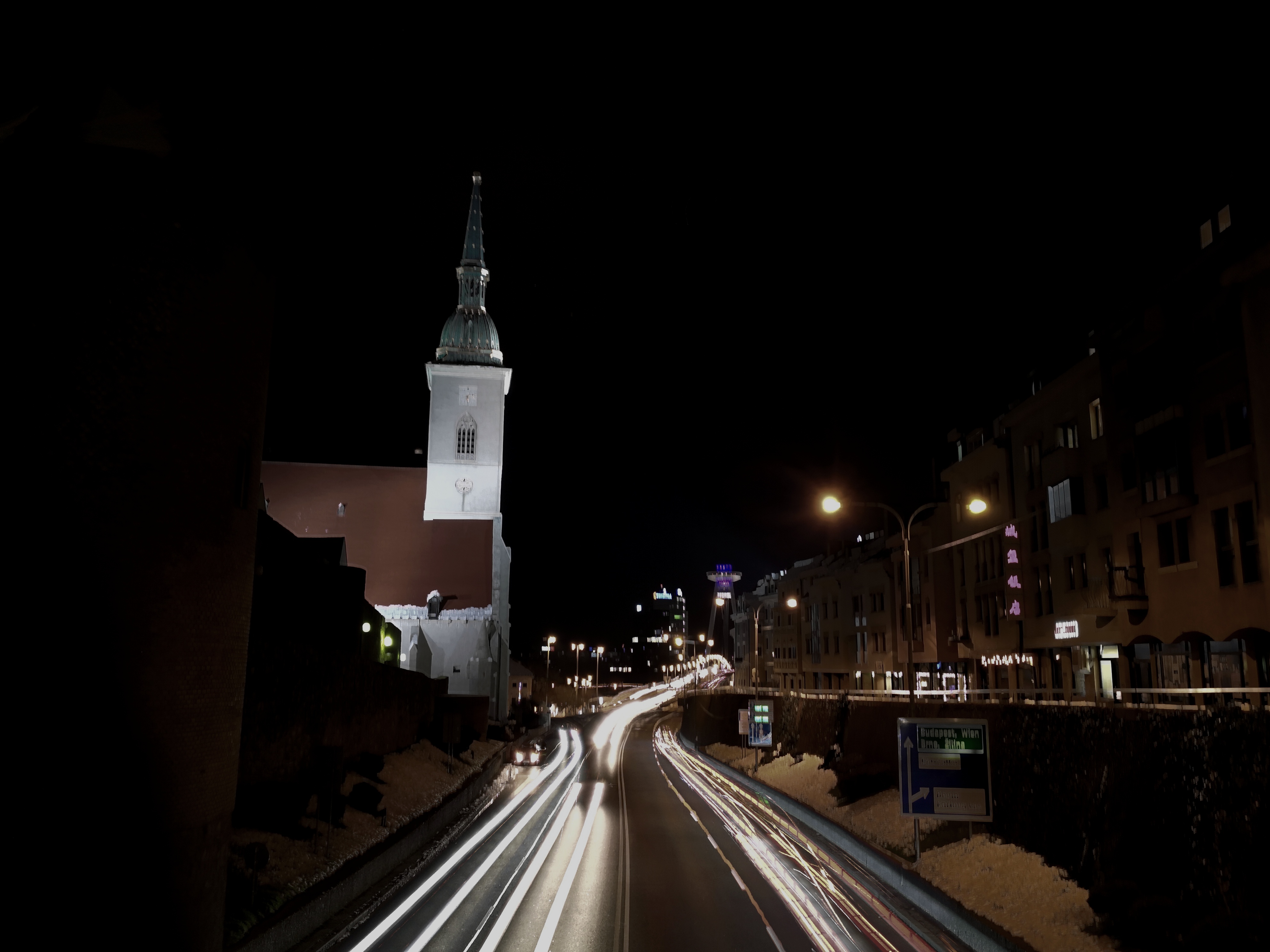 Správne naexponovanie výrazných svetiel na pozadí tmavej oblohy svedčí o vysokom dynamickom rozsahu. Mate 10 Pro využíva maximálny potenciál dvoch fotoaparátov a v tme fotí fotky, aké nezvládnu ani niektoré kompaktné fotoaparáty.