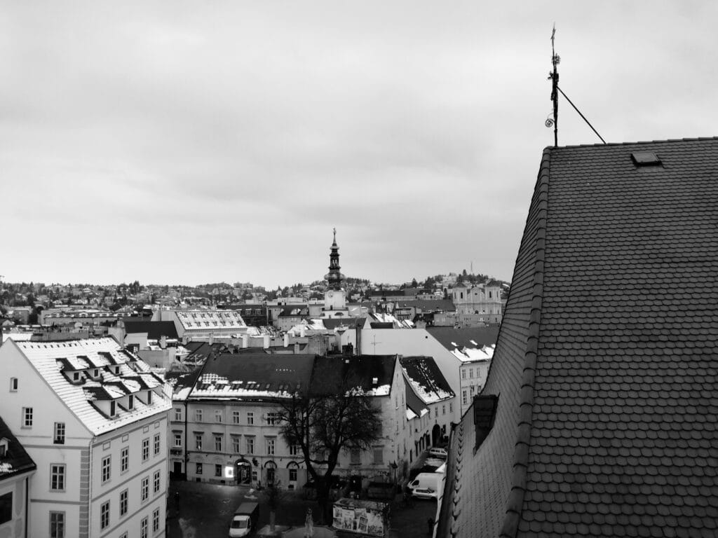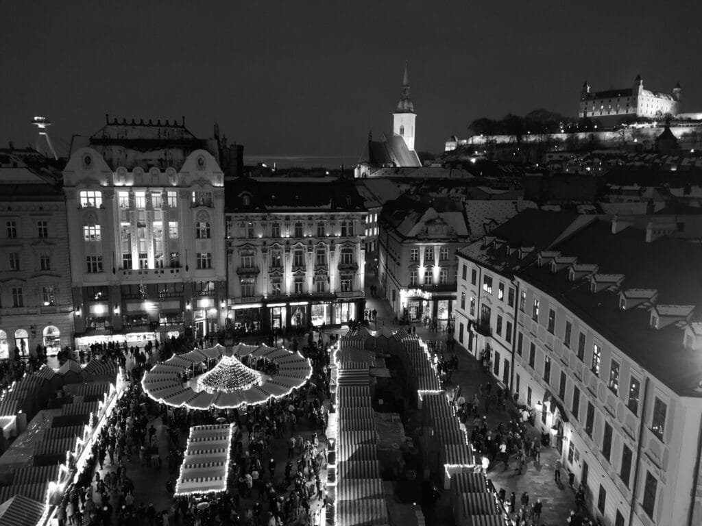 Pri fotení tejto fotky z Radničnej veže už bola takmer úplná tma prerušená len poslednými oranžovými zábleskami na horizonte.