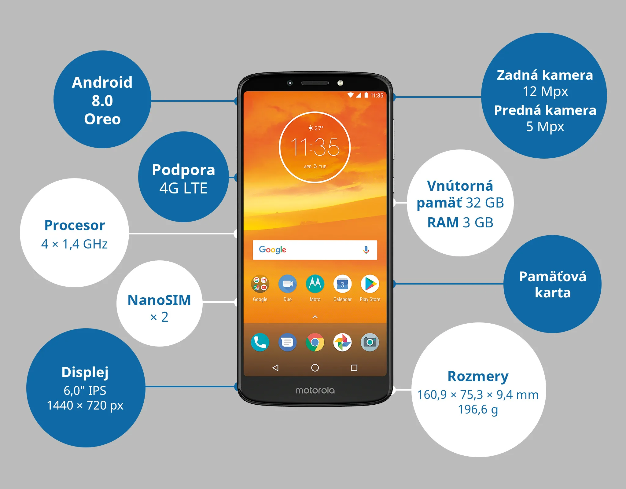 Smartfón Motorola Moto E5 Plus je určený pre nenáročnejších zákazníkov, ktorí si potrpia na dobrú výdrž batérie a na pekné fotografie, ale nechcú zaň zaplatiť veľa. Motorole sa podarilo vytvoriť dobrý telefón, ktorý ponúka veľa muziky za málo peňazí.