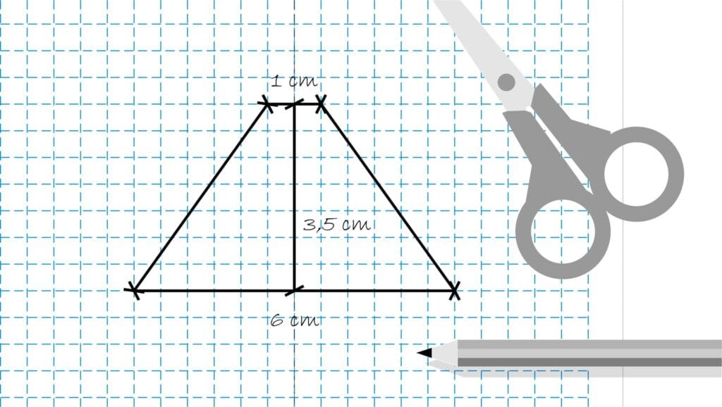 Nakreslite si na štvorčekový papier pomocou pravítka a ceruzky lichobežník. Základne majú dĺžku 6 a 1 cm, jeho výška je 3,5 cm. Ak chcete väčší projektor na tablet, stačí, ak tieto rozmery zdvojnásobíte.