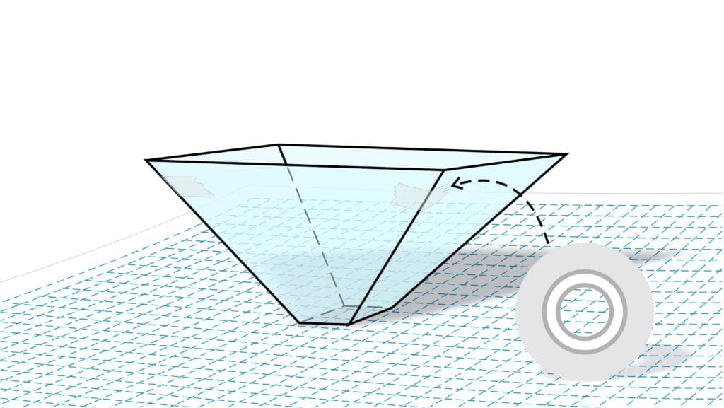 Následne položte na takto vytvorenú šablónu priesvitný plastový obal z CD a orezávatkom vyrežte štyri rovnaké plochy, ktoré zlepíte lepiacou páskou do tvaru štvorstennej zrezanej pyramídy.