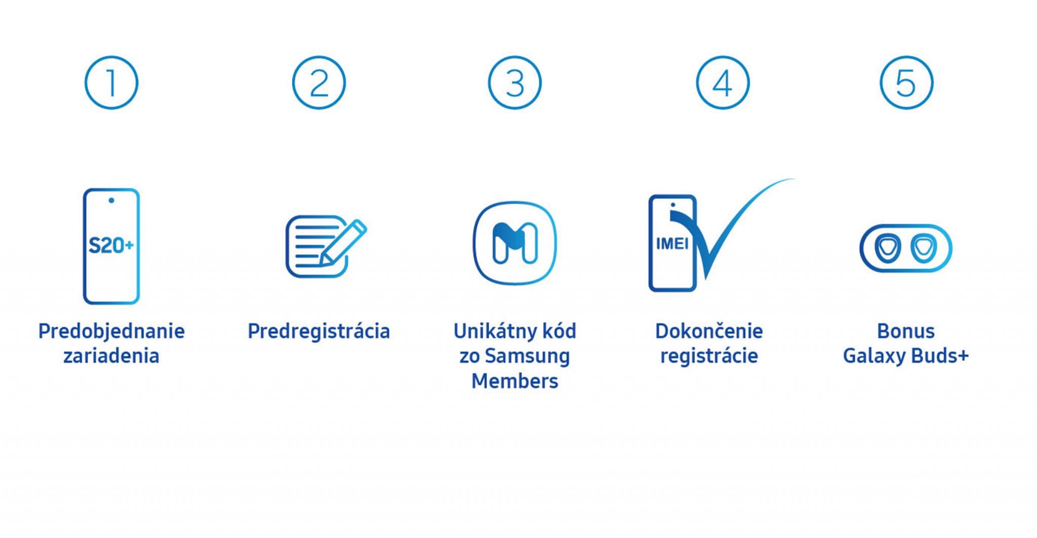 2. Ak máte záujem o bonus Galaxy Buds+, musíte spraviť aj predregistráciu na stránke www.samsung-bonus.eu v období od 11. 2. do 8. 3. 2020, neskôr už predregistrácia nebude možná. Zaregistrujete svoje osobné údaje, model pred objednaného zariadenia a predajcu, u ktorého ste zariadenie predobjednali.