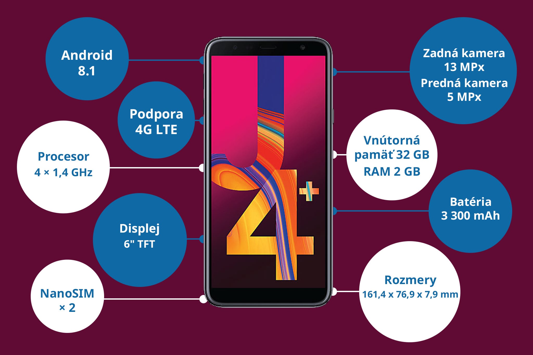 Cenovo dostupnejší model Samsung Galaxy J4 Plus prináša veľa noviniek a vylepšení, ktoré by sme pri predošlých zariadeniach zo série J hľadali len ťažko. Kórejský výrobca tým potvrdzuje, že rozhodne vie, ako má vyzerať kvalitný smartfón.