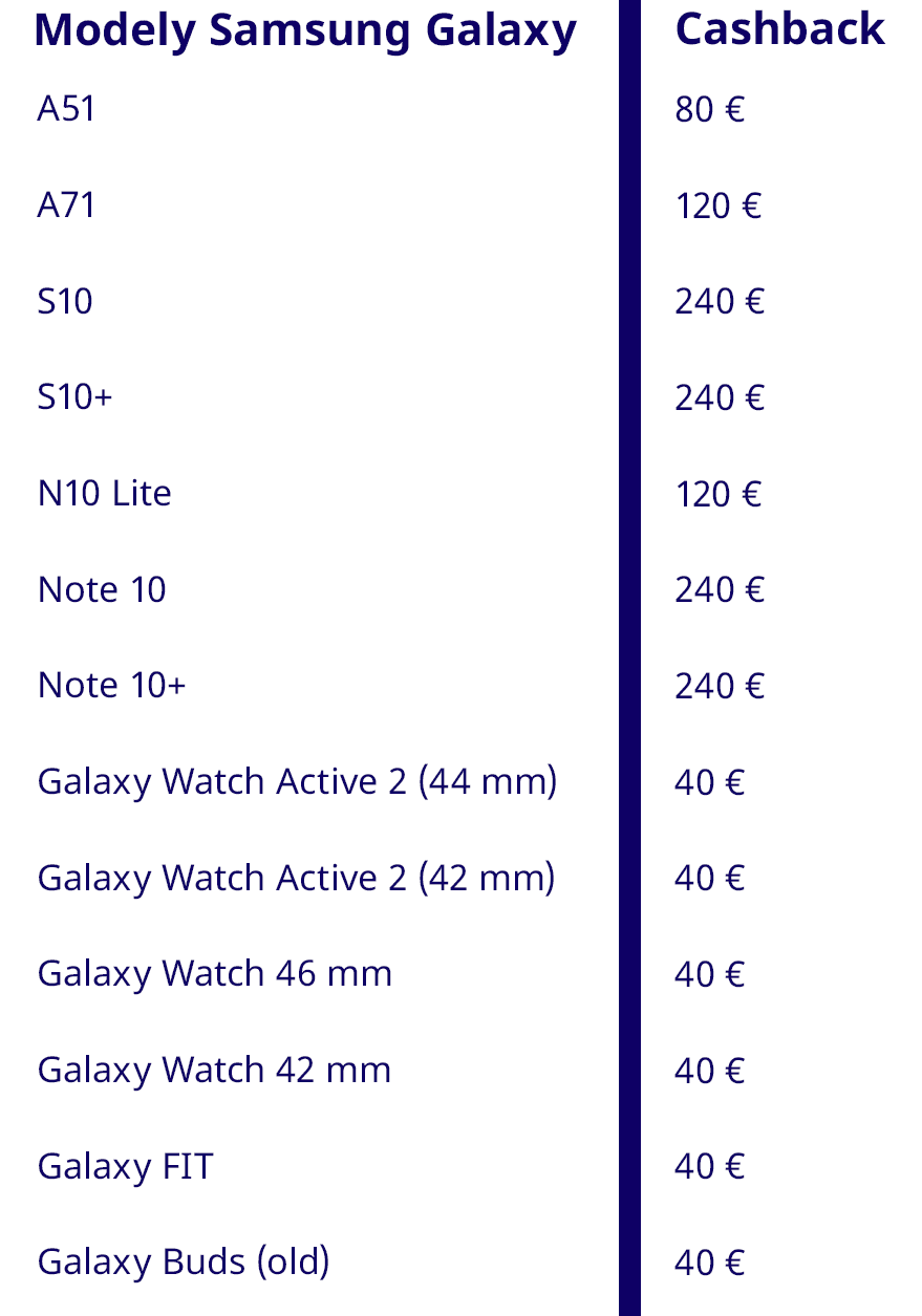 Aby ste vedeli, ktorých modelov sa cashback týka, pripravili sme pre vás prehľadnú tabuľku. Vyberajte rozvážne, akcia je obmedzená na dve zariadenia na osobu.