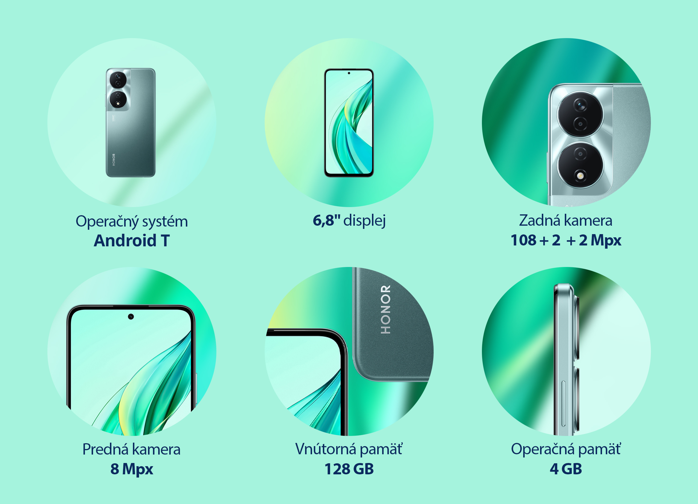 Dominuje na nej fotoaparát, ktorého usporiadanie vychádza z HONORU 90. Primárny 108 Mpx fotoaparát zachytí verné farby aj detaily. Zároveň vám pri tvorbe fotiek môže asistovať umelá inteligencia, ktorá nastaví parametre fotoaparátu pre čo najlepší výsledok.