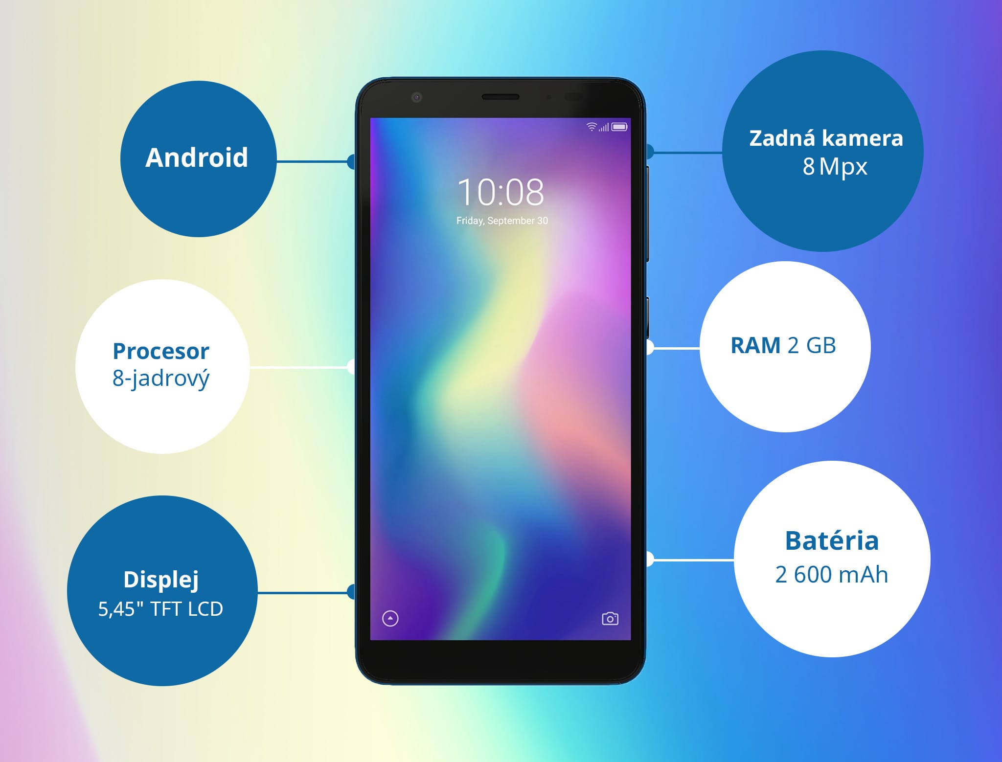 Srdcom smartfónu je osemjadrový procesor s dostatočným výkonom na chod bežne používaných aplikácií, ako sú Facebook, Messenger či Instagram. Sekunduje mu operačná pamäť RAM s veľkosťou 2 GB. Tešiť sa môžete na nový operačný systém Android 9.0 Pie.