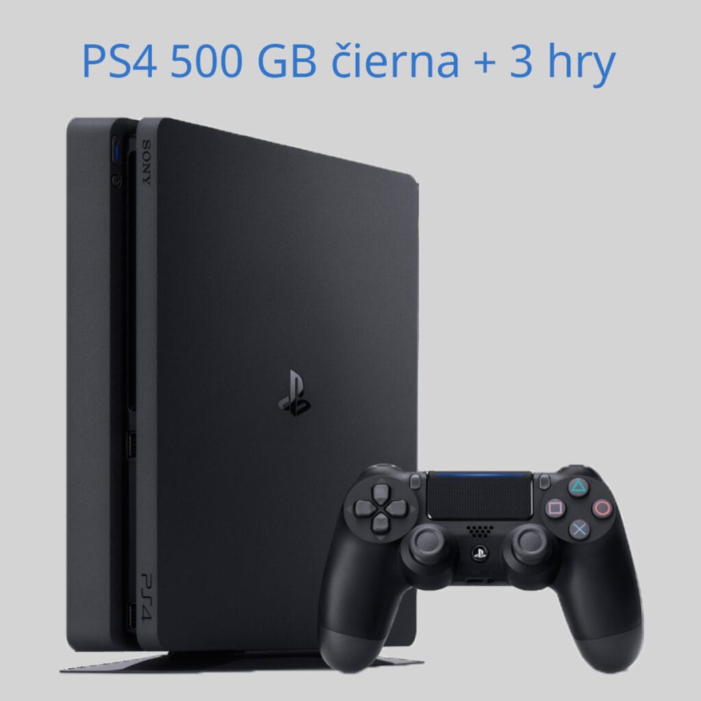 - cena – 1 x PS4 500 GB čierna + 3 hry