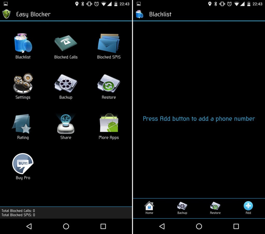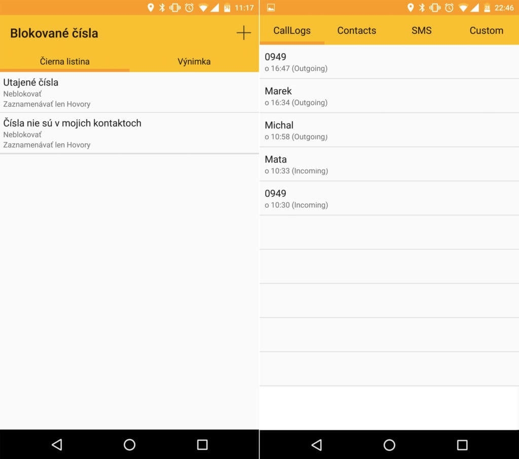 Obe fungujú na rovnakom princípe, teda odmietnutia hovoru. Aplikacia Blacklist umožňuje rôzne nastavenia, čo s hovorom urobiť: vypnúť zvonenie, alebo úplne odmietnuť hovor.