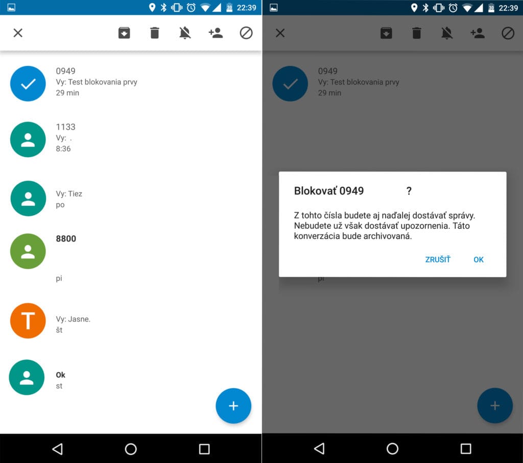Nexus 6P, (ktorý práve používam), obsahuje len základný register blokovaných kontaktov. To znamená, že je možné zablokovať len prichádzajúce hovory a SMS správy z konkrétneho čísla.