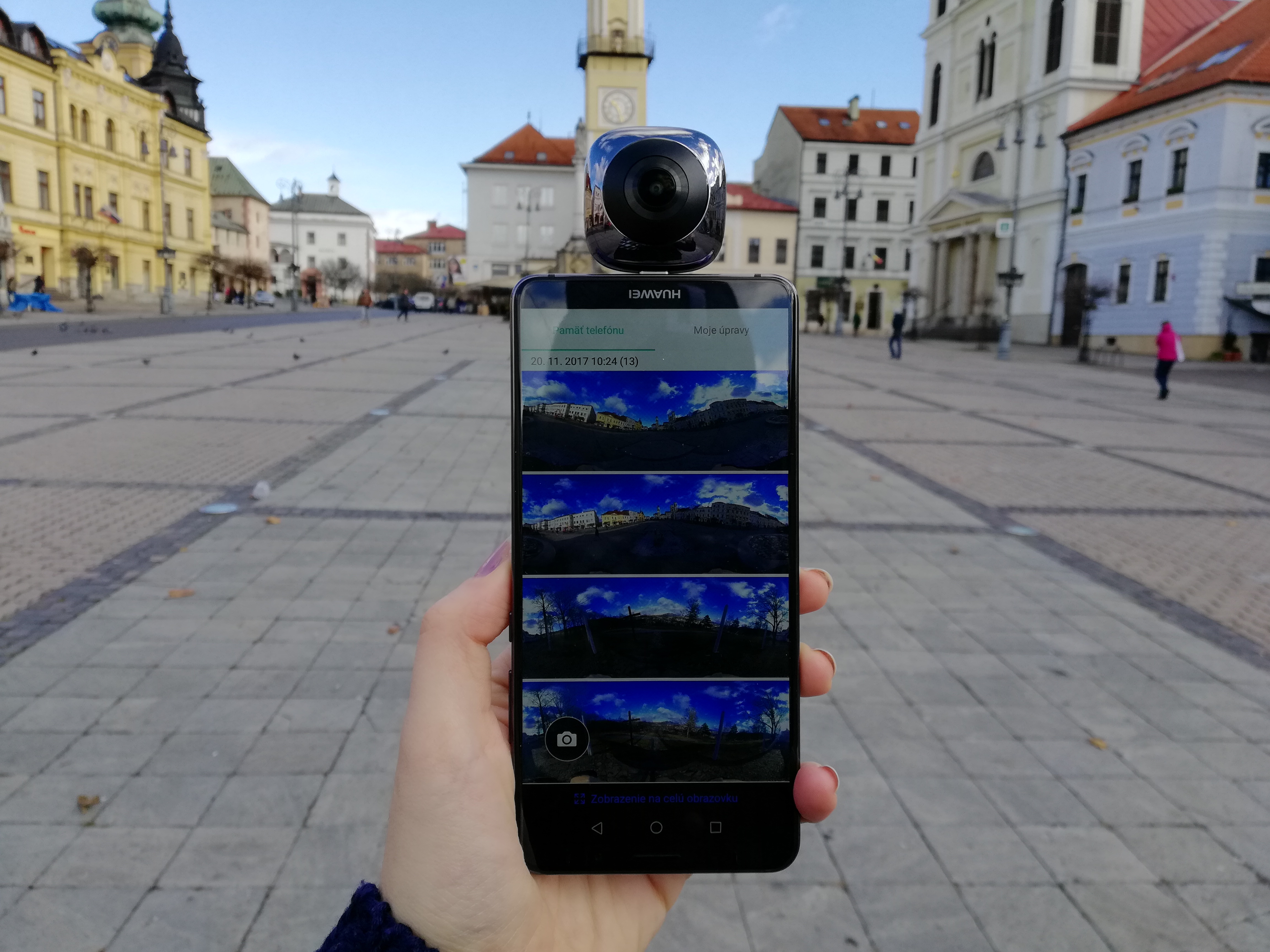 Po náročnej túre s partiou kamarátov vytiahnete svoj smartfón a pripojíte k nemu drobnú kamerku, stlačíte jedno tlačidlo, nemusíte urobiť žiaden pohyb a kamera zosníma nielen vás s kamarátmi, ale aj všetko naokolo. Celý priestor v jedinom 360-stupňovom zábere.