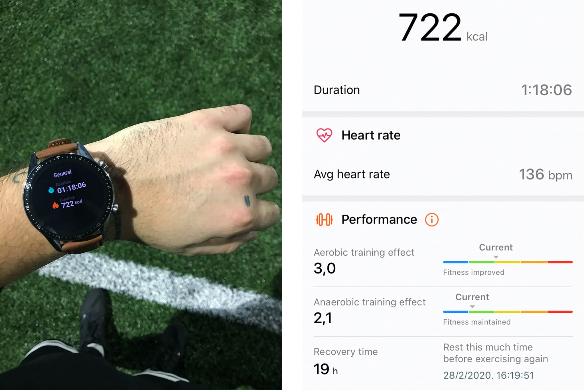Najväčšiu záťaž som s hodinkami zažil v posledný deň testovania na futbalovom tréningu. Na spomínaných funkčných tréningoch som za hodinu spálil priemerne 260 kalórií, na futbale za hodinu a pol skoro 800 kalórií. Na konci tréningu mi softvér dokonca odporučil 19 hodín rekonvalescencie pred akýmkoľvek ďalším pohybom a musím uznať, že som to aj potreboval.