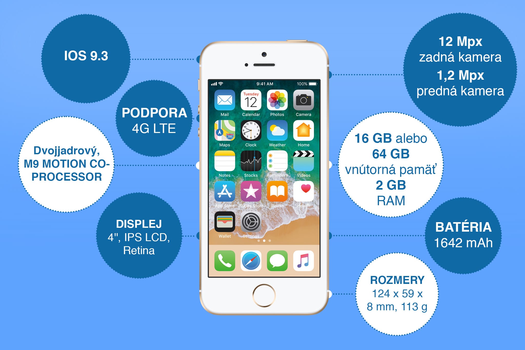 Apple v prípade tohto telefónu zachovalo rozmery modelov 5 a 5S, no do vienka pridalo výkon 6S. Výhodou zariadenia je tak kompatibilita doplnkov, napríklad ochranných obalov. Použiť môžete aj tie, ktoré vám slúžili pri 5-kových modeloch.