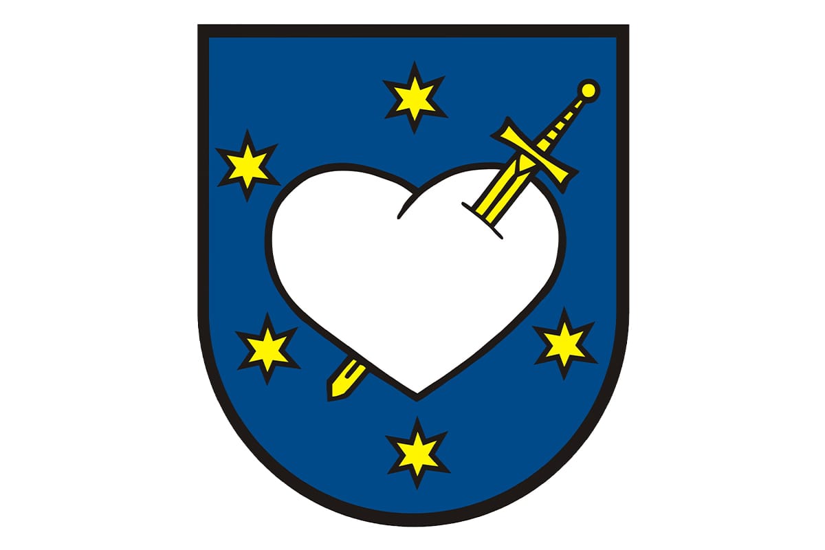 - 2. Presuňme sa do okolia ďalšieho známeho hradu. V erbe jednej z obcí ležiacich pod Spišským hradom nájdete strieborné srdce prepichnuté zlatým mečom a obkolesené piatimi zlatými hviezdami. Viete, o ktorú obec ide?