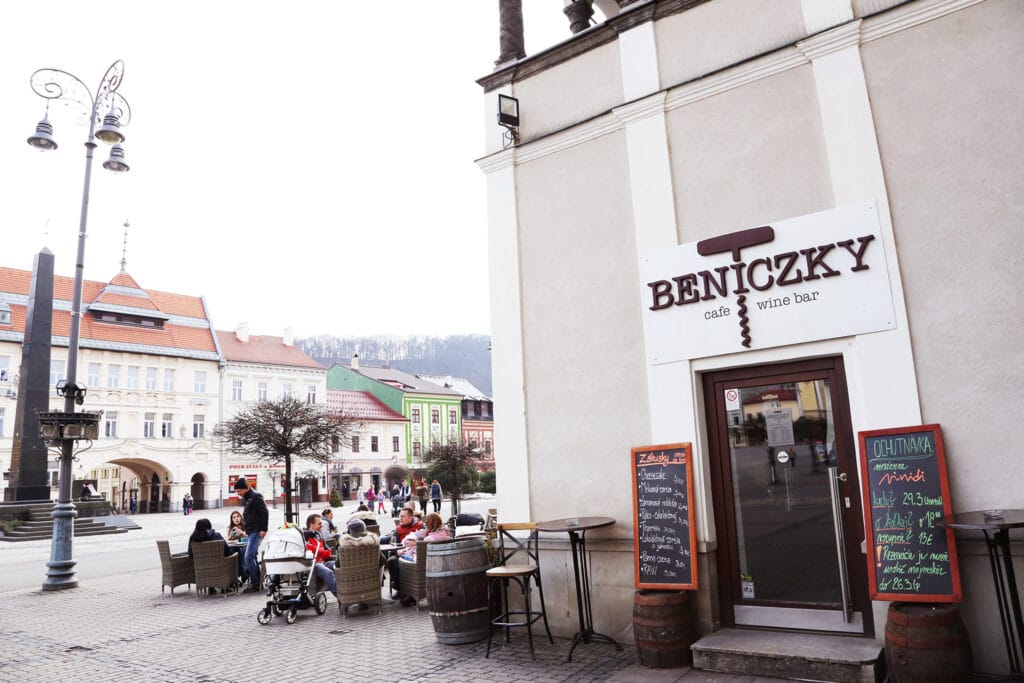 Beniczky Cafe & Wine Bar nájdete aj vďaka veľkej terase, ktorú v poobedňajších hodinách zaplavuje slnko, a vy si tak môžete vychutnať kávu s poctivým koláčom na čerstvom vzduchu.