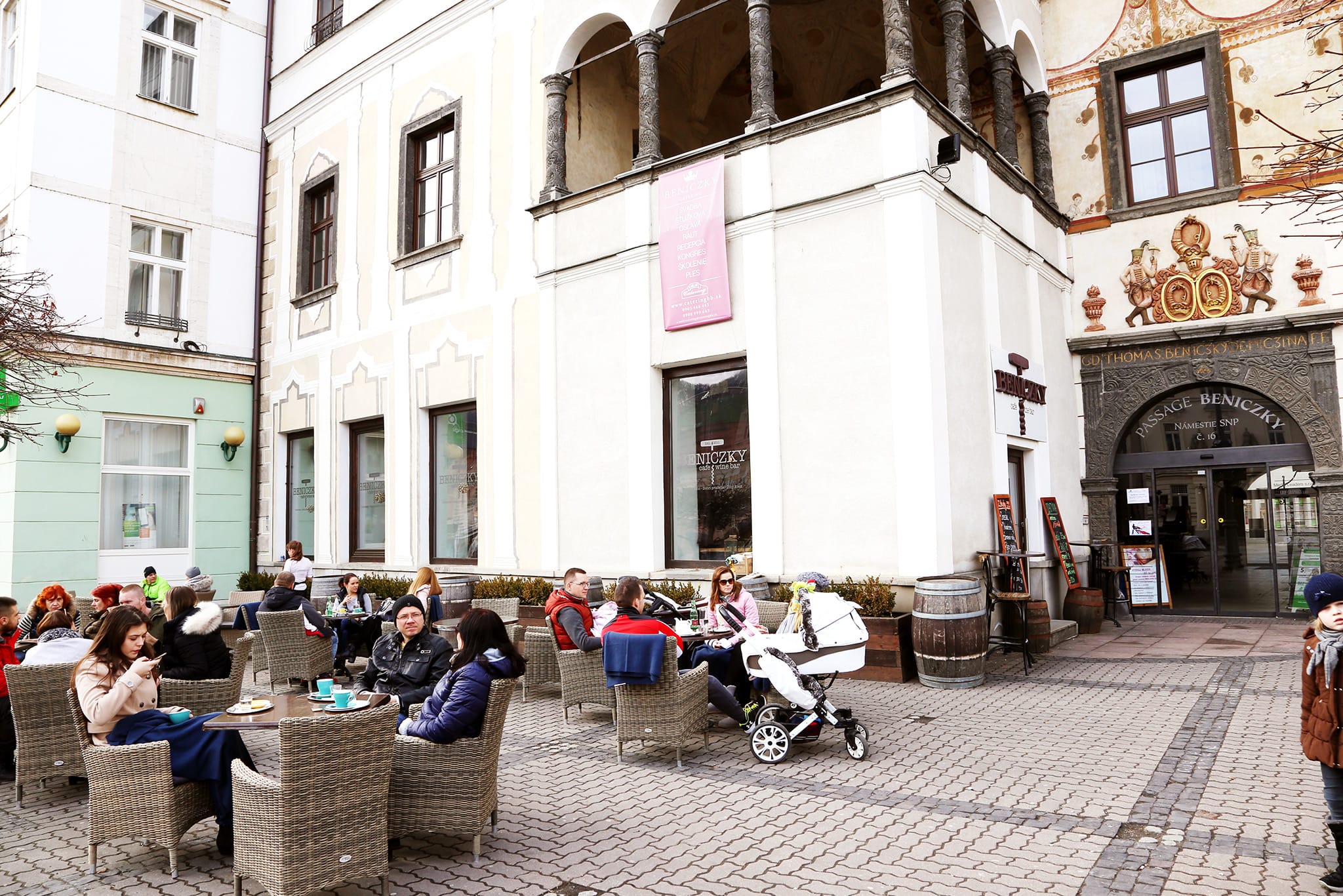 Po príchode do Banskej Bystrice sme si v ranných hodinách chceli vychutnať šálku dobrej kávy v centre mesta. Zašli sme teda k Beniczkemu, kaviarni, ktorá nás hneď po vstupne oslovila svojím moderným, no útulným priestorom. Farebnosť interiéru zdôrazňovali slnečné lúče, ktoré dnu prenikali cez veľké okná.
