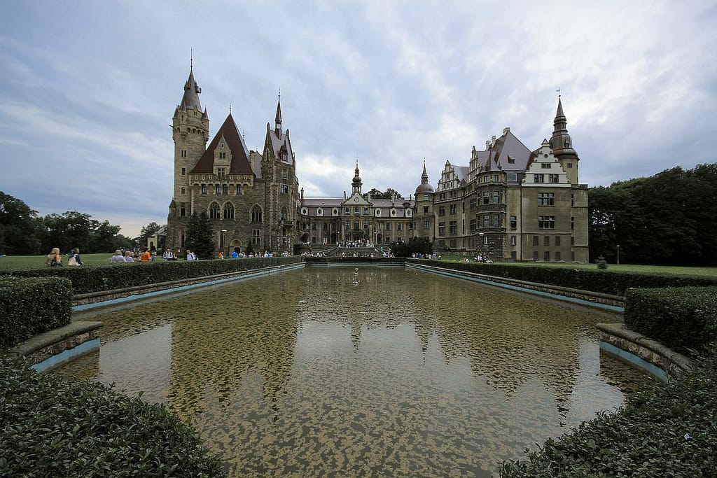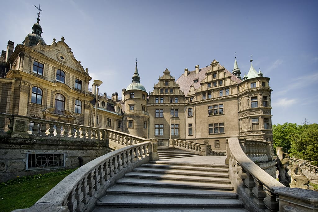 Rozprávkovo pôsobiaci zámok na juhozápade Poľska má vraj korene v templárskom období, každopádne však jeho základy pochádzajú ešte zo stredoveku. Miešajú sa v ňom barokové, neogotické aj neorenesančné prvky. Tie si môžete prezrieť zvonku, aj zvnútra. Zámok zdobí okrasná záhrada, ktorou sa môžete poprechádzať.