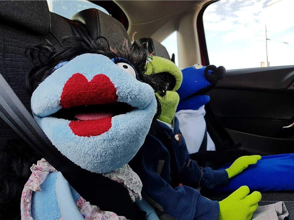 Z ruchu hlavného mesta sa vo štvrtok ráno maňušky vydali na približne trojhodinovú cestu na hrad Modrý Kameň. Veselá partia nepodceňuje bezpečnostné predpisy, a tak sa všetci poctivo pripútali.