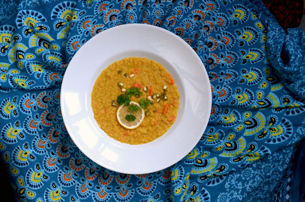Netradičná kombinácia červenej šošovice a kokosového mlieka vás zahreje aj zasýti. Šošovica má pozoruhodný obsah bielkovín, je bohatá na sacharidy a poslúži ako výborná náhrada mäsa. Okrem toho patrí aj k výdatným zdrojom železa – pomáha odstraňovať únavu, zvyšuje výkonnosť a má omladzujúce účinky.