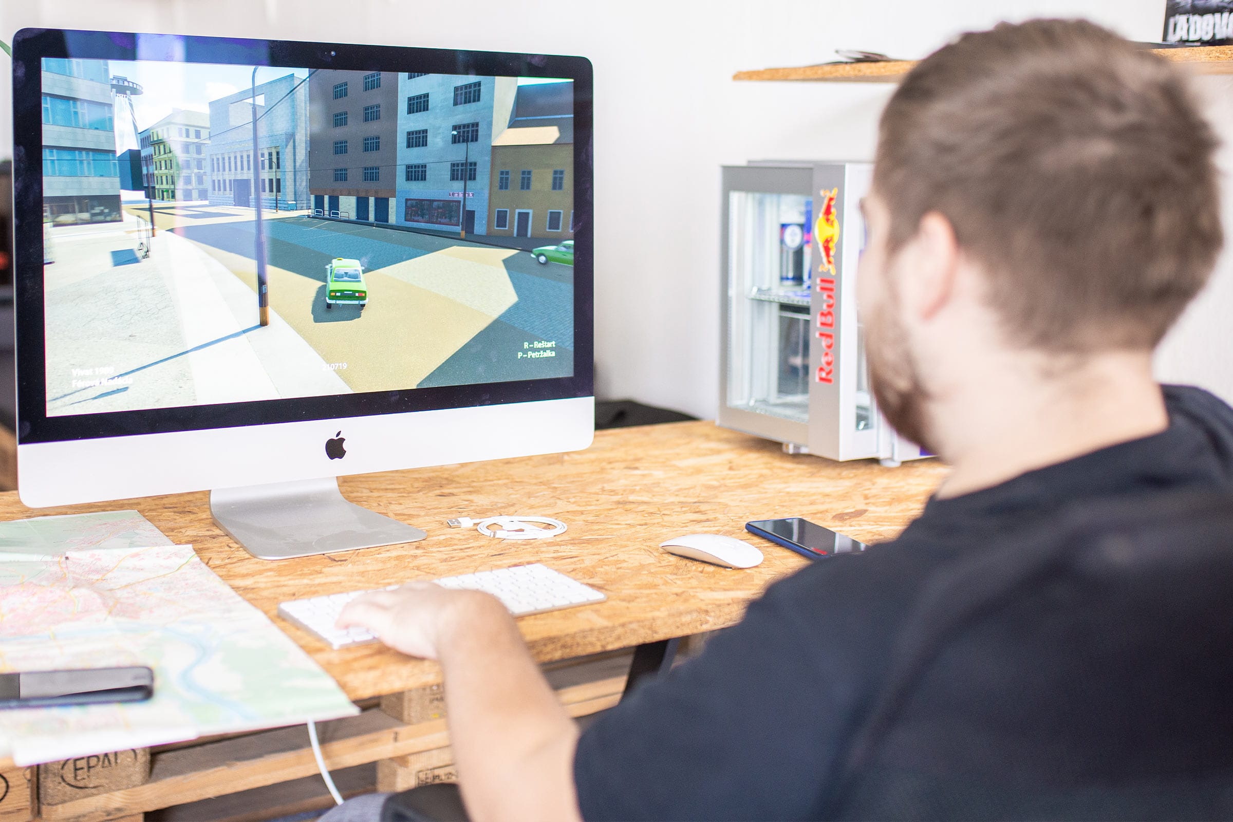 „Náš príbeh vychádza z hernej mechaniky. Vedeli sme, že môžeme využiť jazdenie po meste, a tak hru postaviť na pretekoch alebo taxikárčení,“ opisuje Roman začiatky hry. Fungujúca doprava je však náročná na vyladenie, pretože musí rešpektovať dopravné značenia, chodcov a chod premávky.