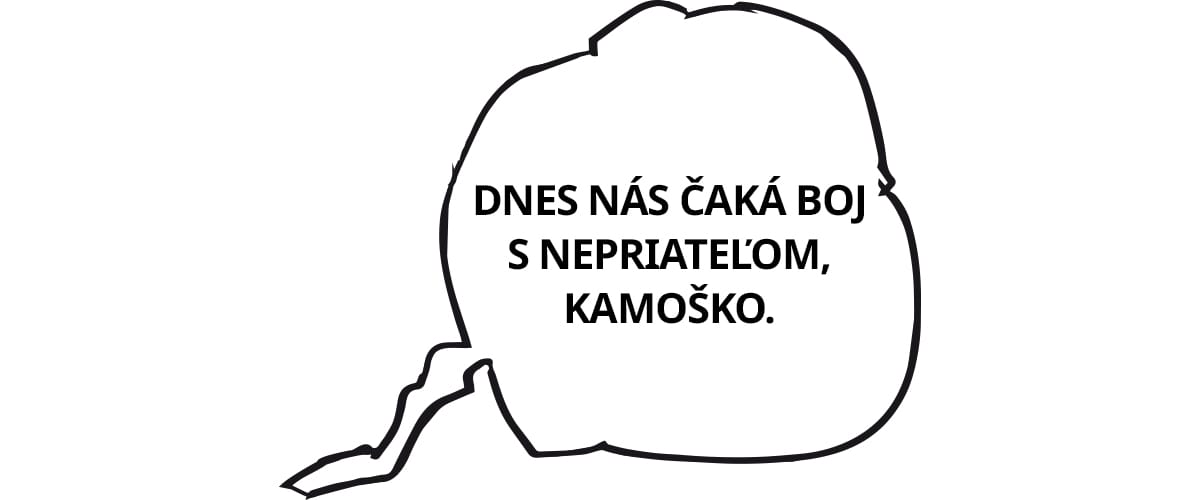 Predtým však šepol. „Dnes nás čaká boj s nepriateľom, kamoško.“ Vnímal, ako Fero kráča preč. Jeho slová v ňom rezonovali. Boj s nepriateľom.