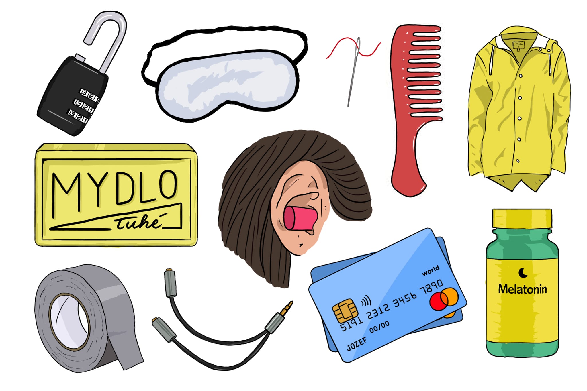 Maska na spanie a štuple do uší – Môžu prísť vhod, ak svetlo či hluk na ubytovaní nebudú práve ideálne.
