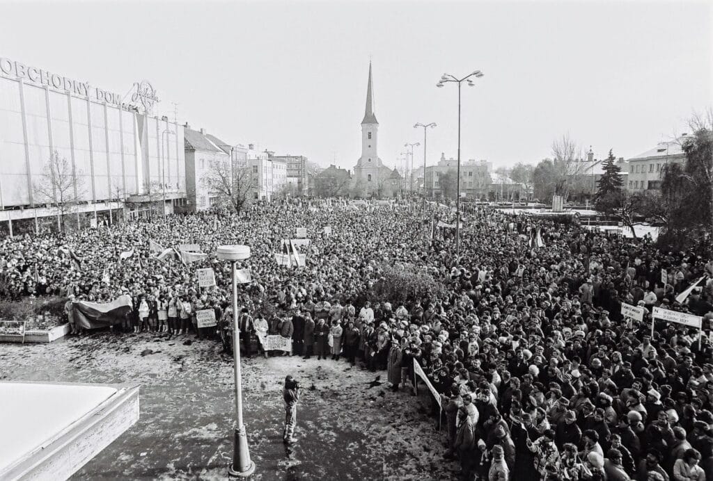 „Zamatová revolúcia 1989 podľa mňa zvrátila komunistickú éru vo východnej Európe. Na fotografii je hlavné námestie môjho domovského mesta Nové Zámky počas novembrových zhromaždení. Dokumentoval som revolučné udalosti a mám najväčšiu fotografickú zbierku nežnej revolúcie ako takej. Medzi silné momenty môžem zaradiť privítanie pána Dubčeka na novozámockom letisku, ale najsilnejší zážitok som mal z humanitárnej pomoci Rumunsku a konkrétne Temešváru v dňoch 22. až 25. decembra 1989.