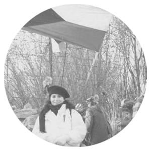 Ľudia však boli na námestí šťastní, naplnení očakávaním a radosťou z postupných zmien. Eufória pozitívnej energie len tak sálala vo vzduchu. Vtedy som bola šťastná a hrdá, že som z Československa. A 10. decembra 1989, počas prvého slobodného vycestovania na západ, bolo už krásne slnečné počasie, aj keď mrazivé. Išli sme na 1. slobodný pochod do Hainburgu. Fotka je práve z Hainburgu, pri drôtenom srdci, s vlajkou Československa.“