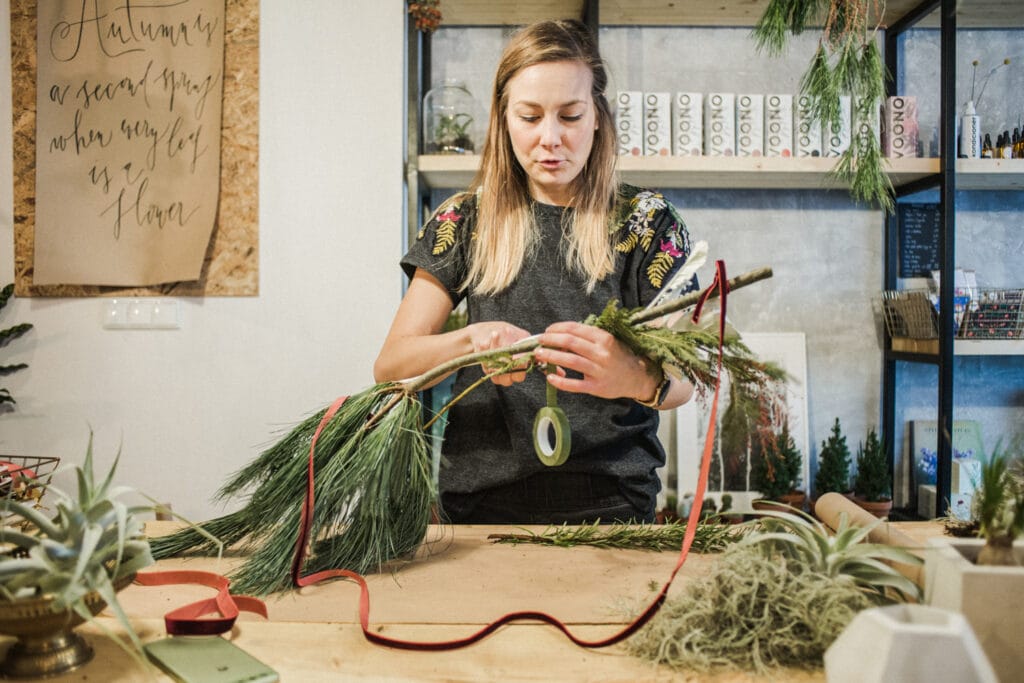 5. Pri práci používajte floristickú pásku, s ktorou sa manipuluje lepšie ako so špagátom a rastlinám neublíži.