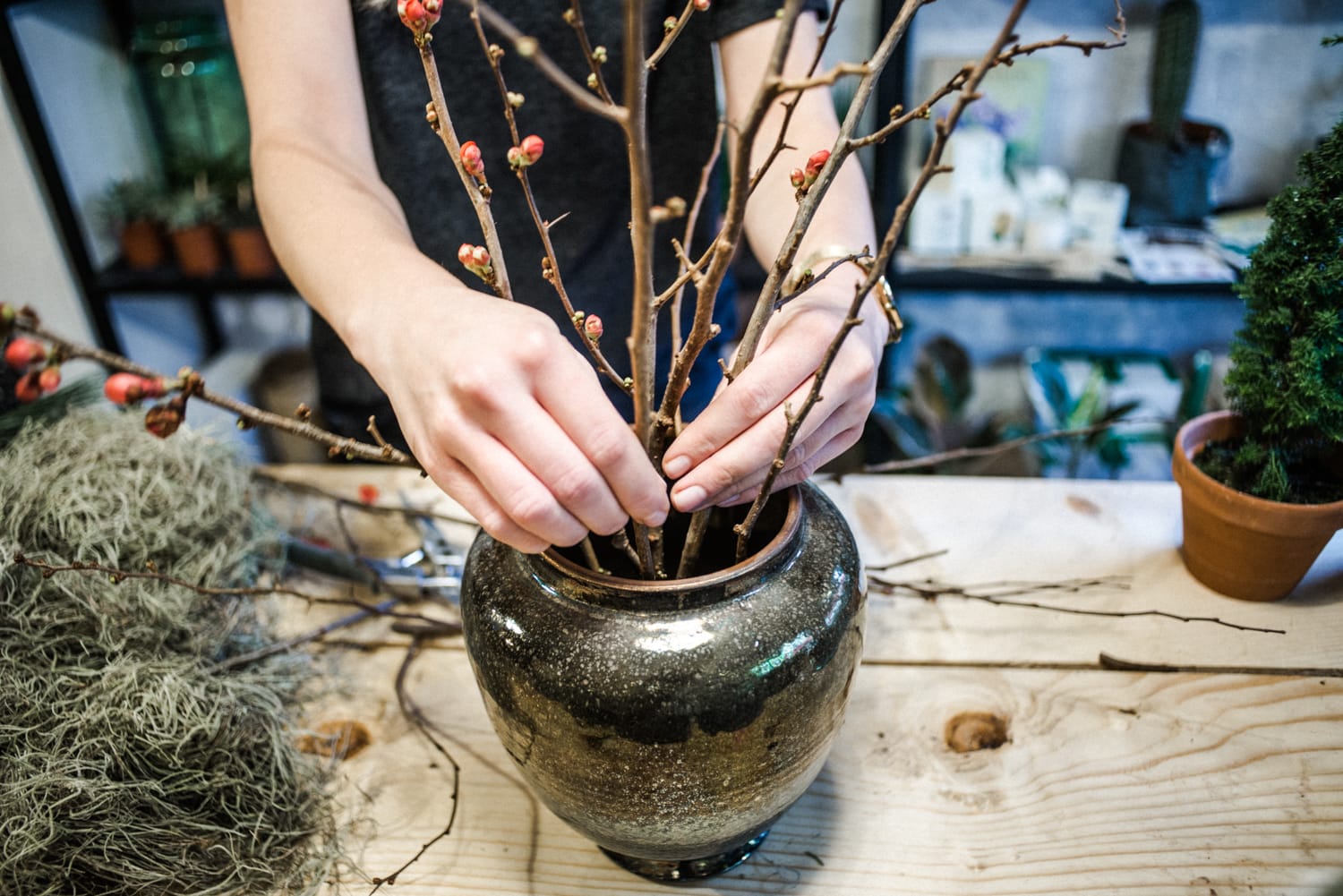 Peknou dekoráciou nielen na vianočný stôl sú kvitnúce konáriky umiestnené v štýlovej nádobe alebo váze. „Využiť môžete halúzky, ktoré majú počas skorej zimy tendenciu pučať, napríklad magnólie a čerešne,“ približuje Lenka.