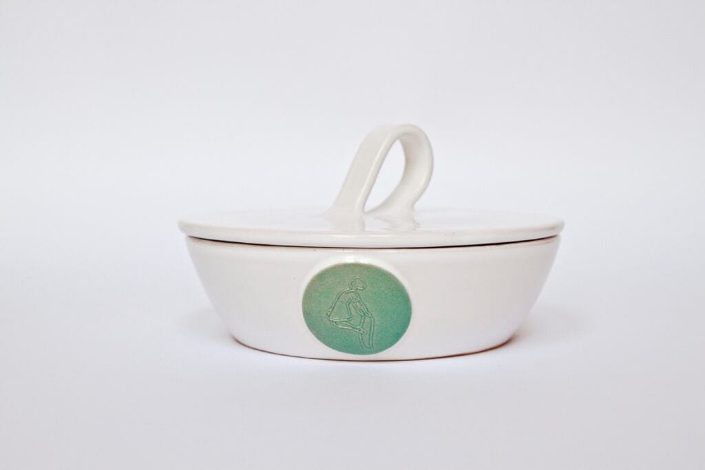 Najprv dizajnérka vyryla ilustrácie športovcov do sadry tupou ihlou. Zo sadrovej formy sa pretlačili do moduritovej pečiatky. A následne sa otlačili do finálnej hlinenej pečiatky – placačky, ktorá sa nalepila na výrobok.