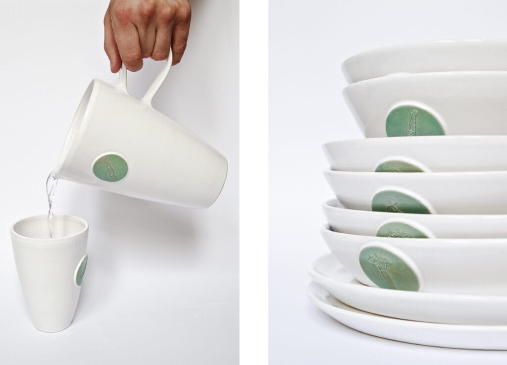 Na raňajkovom sete Raňajky šampiónov je použitá technika pečiatkovania – čo je jeden zo spôsobov, ako si majstri značkovali svoju keramiku.