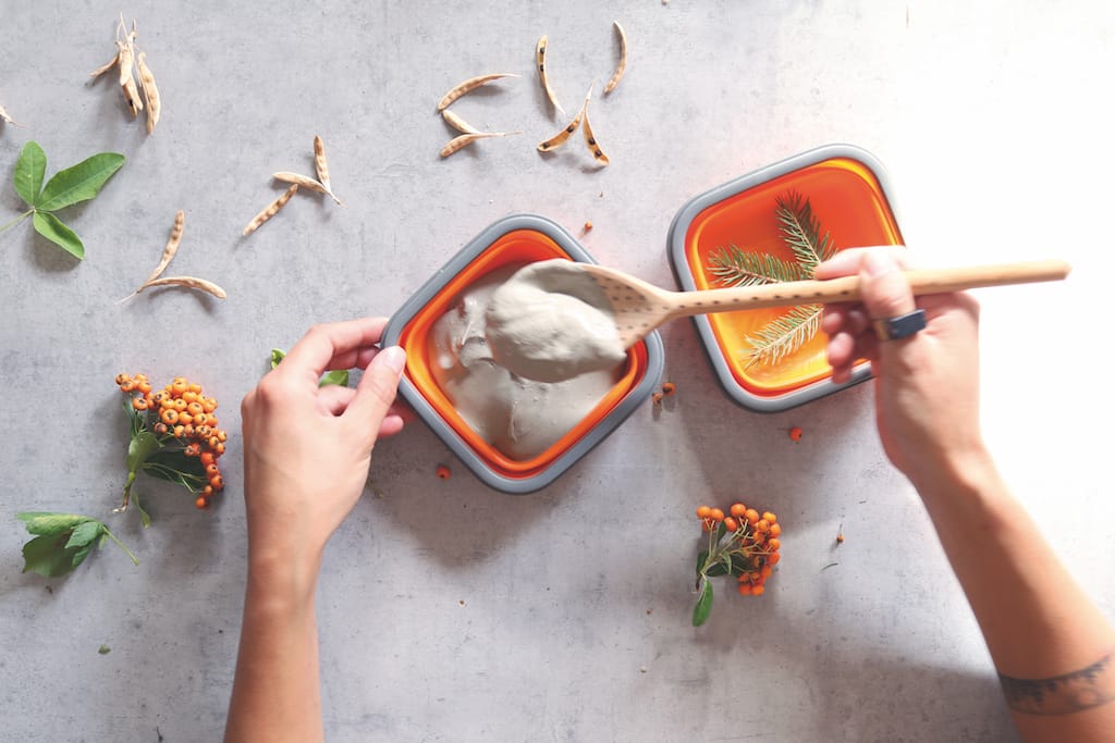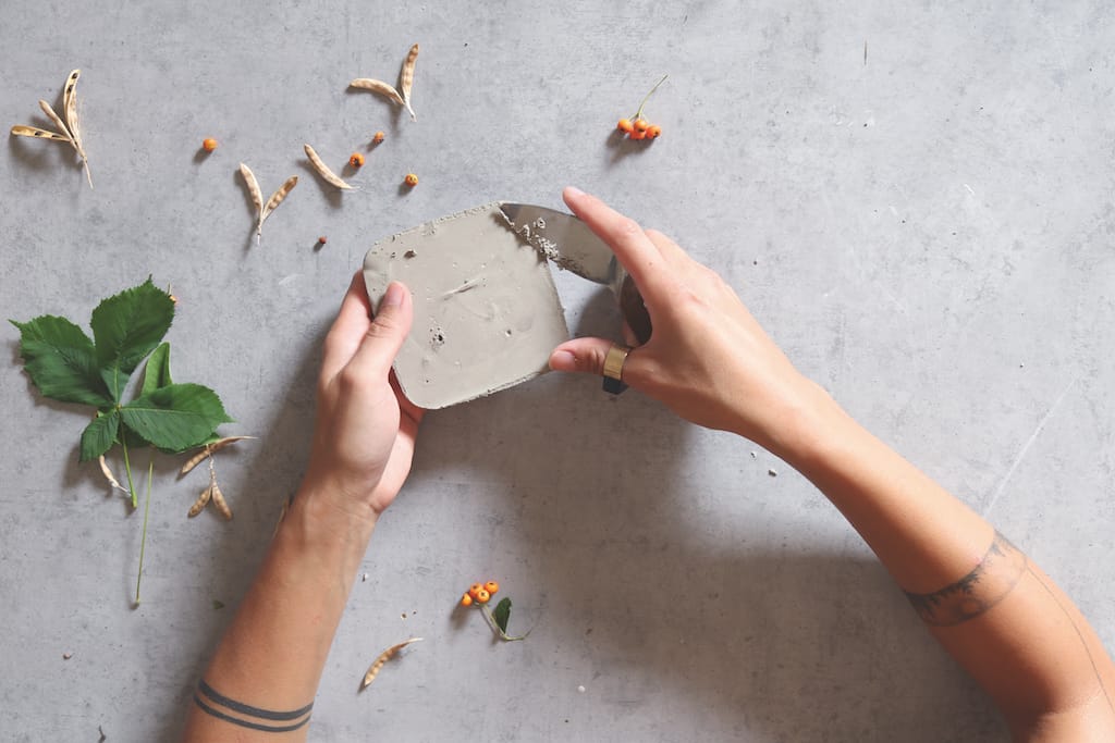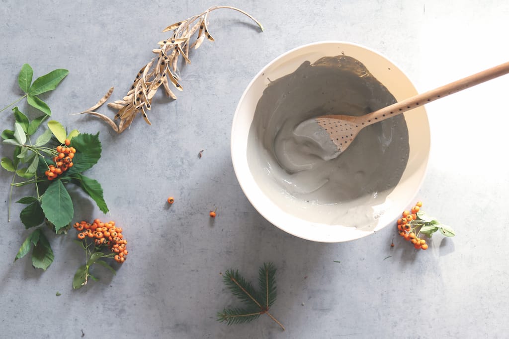 5.) Podšálku z nádoby vyklopte a odstráňte lístok. Ideálne je, keď sadra ešte nie je úplne stuhnutá. Lístok dostanete zo sadry jednoduchšie von.