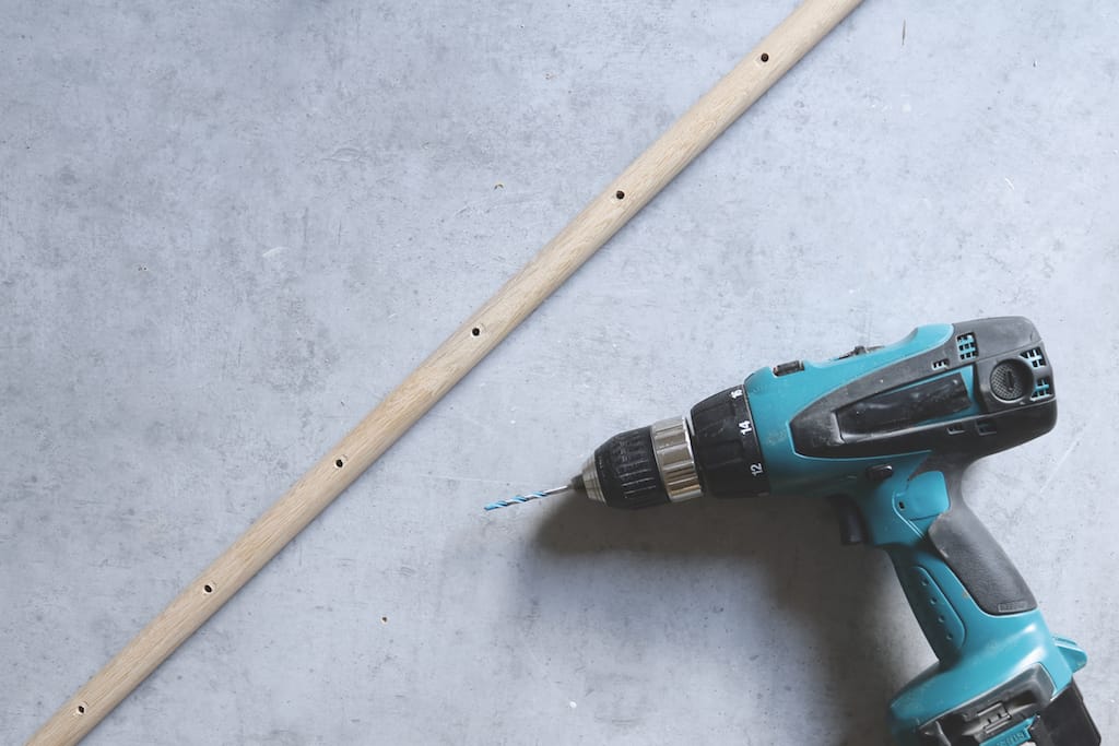 6.) Určite si vrchnú časť nástenkya zhora do hornej tyče navŕtajte niekde na okraje dve diery (na každý okraj jednu).