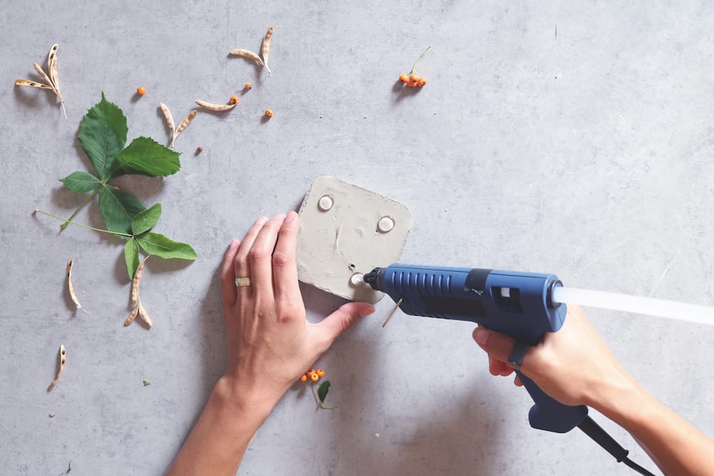8.) Na spodnú časť tavnou pištoľou naneste štyri bodky, vďaka ktorým sa podšálka nebude po stole kĺzať a ani vám ho nepoškriabe.