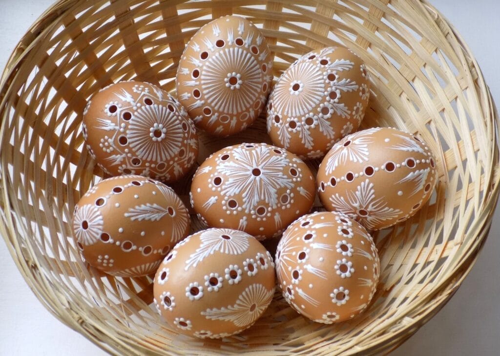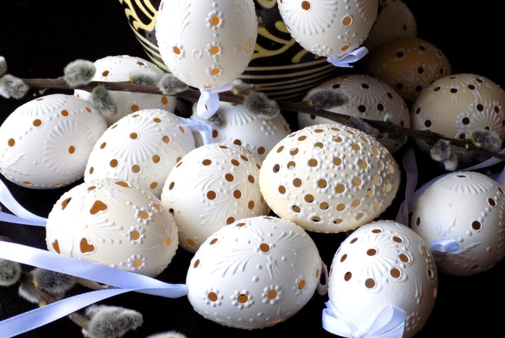Tradičná a zároveň nádherná technika. Plastické voskové vzory najčastejšie zobrazujú kvety, ktoré sú tiež symbolom jari. Ak si sami trúfate na tento druh zdobenia, ako materiál dobre poslúžia roztopené detské voskovky. Sú ľahko dostupné, majú správnu hustotu a množstvo farebných variácií. Stačí už len zapojiť vlastnú kreativitu.