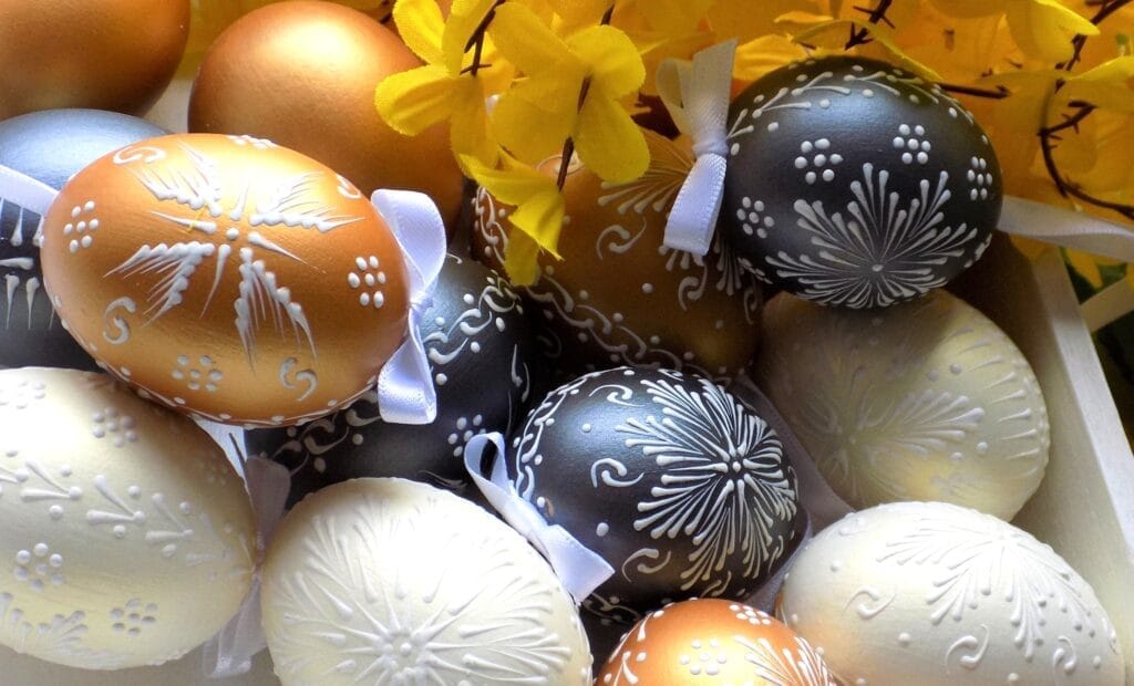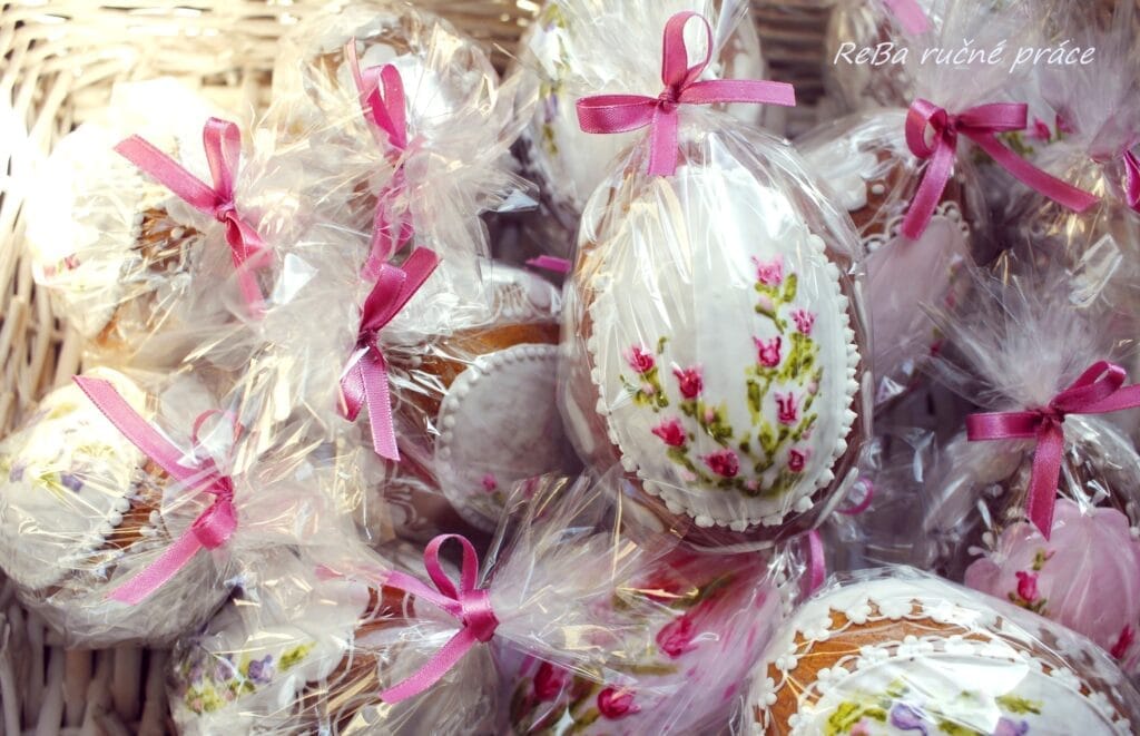 Perníkové vajíčka nie sú síce ozajstné kraslice, ale okrem okrasnej funkcie potešia aj mlsné jazýčky. S takouto výzdobou a výslužkou očaríte oveľa viac ako s klasickými čokoládovými vajíčkami z obchodu.