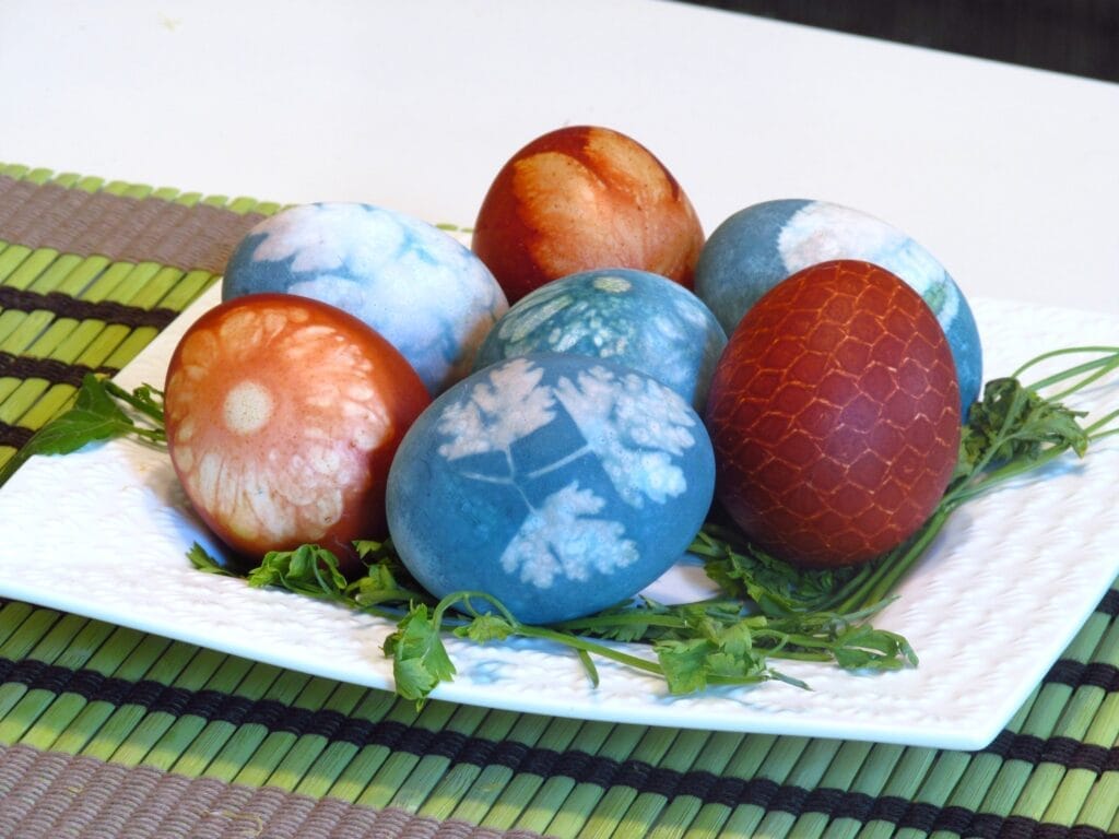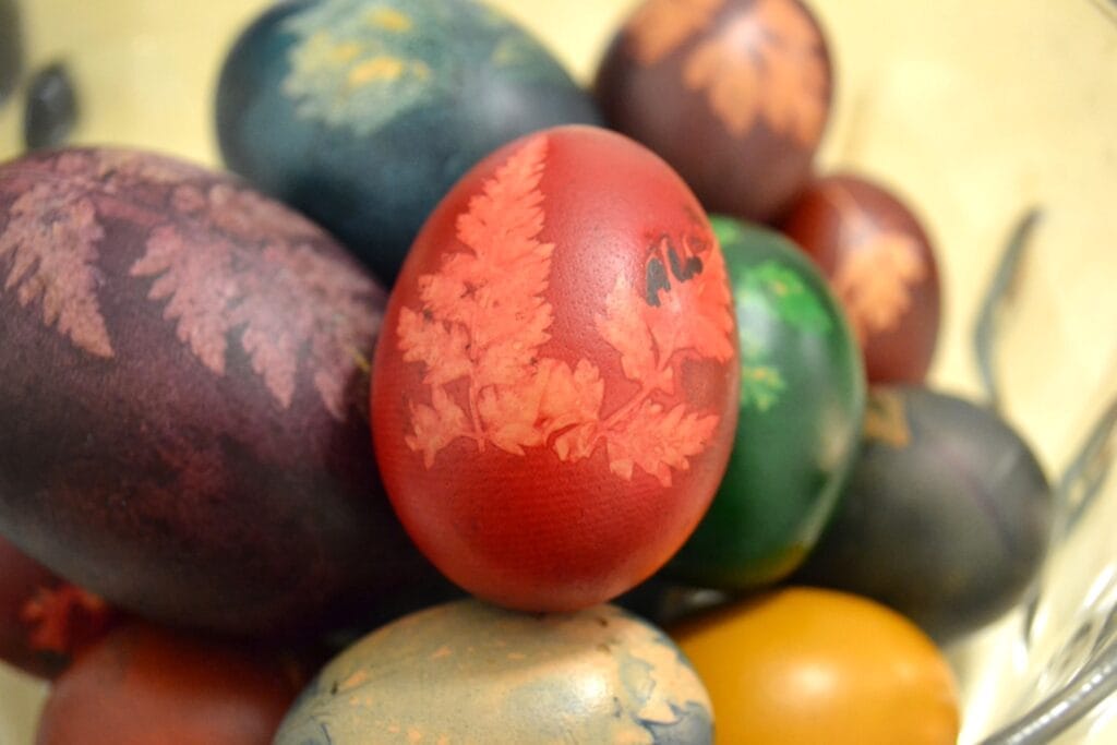 Ak sa vám nechce nič maľovať ani omotávať drôtom, môžete zdobenie nechať na prírodu. Je to jednoduchá technika s fascinujúcim výsledkom. Na prechádzke nazbierajte pár listov a kvetov a pritlačte ich tesne na škrupinky. Potom vajíčka obaľte tesne do tenkých siloniek, namočte do farby a nechajte vyschnúť. Prajeme veľa šťastia s výsledkom.