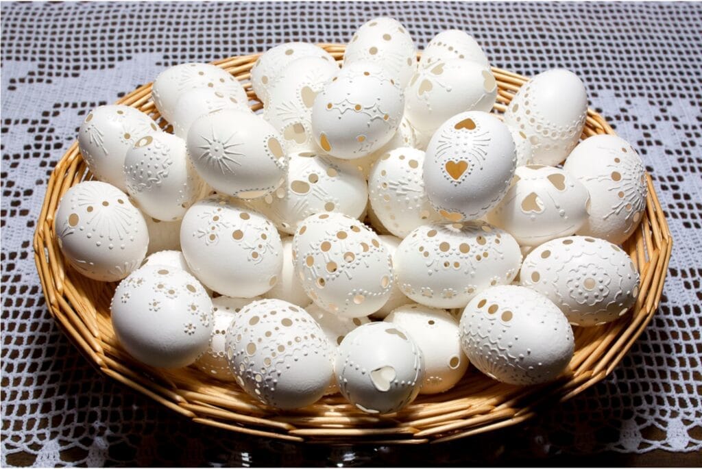 Vyfúknuté vajce je prípustné len v modernej dobe, v niekdajších časoch by takéto vajce znamenalo smrť. Preto sa farbili a zdobili plné vajíčka, zväčša uvarené na tvrdo.