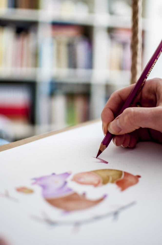 Papier, farby, sadu kaligrafických pier, tuš, pentelku, kávu a ticho, kedy sa môžem ponoriť do svojho rozprávkového sveta.”