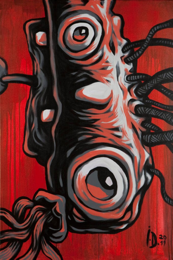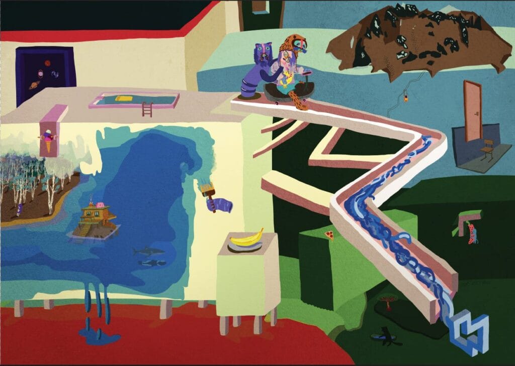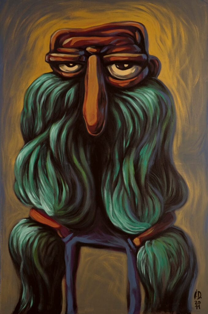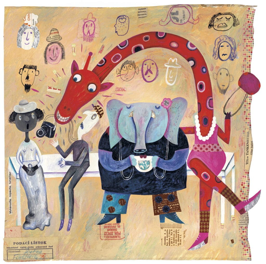 Vyhýbam sa priestoru a perspektíve ako sa len dá. Rovnako, dokonalosti figurálnych proporcií som na míle vzdialená. Mojej štylizácii dominuje hra s farbami, koláž a zúfalé postavičky, ktoré u čitateľa, dúfam, vzbudzujú sympatie.