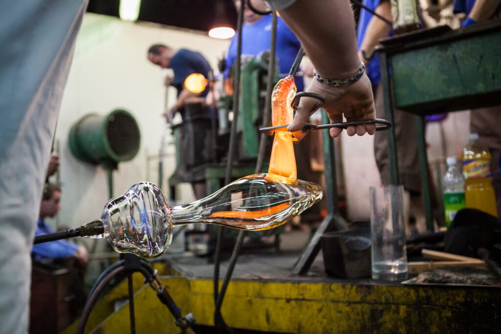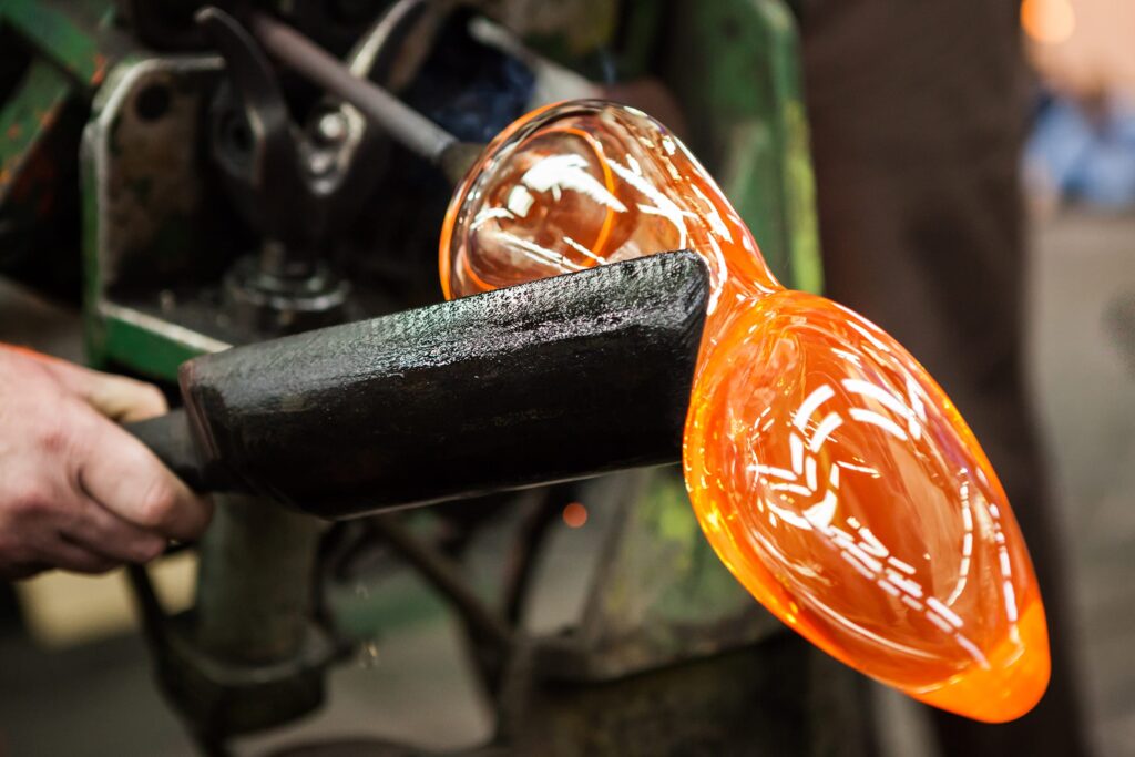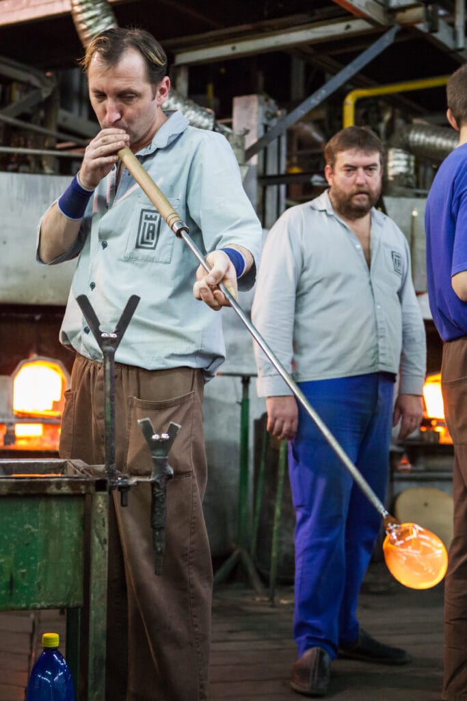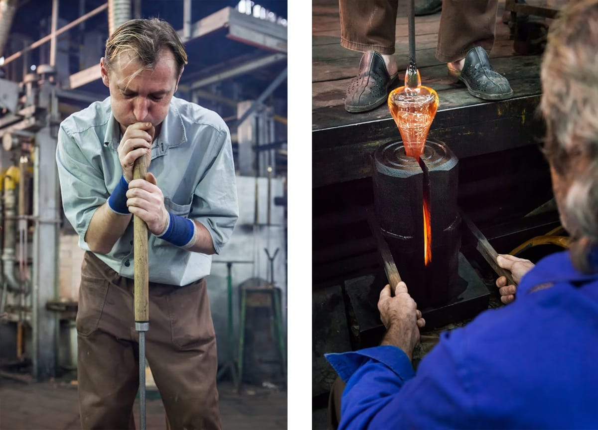 Fúkaním skloviny do formy dostáva výrobok presný tvar navrhnutý dizajnérom.
