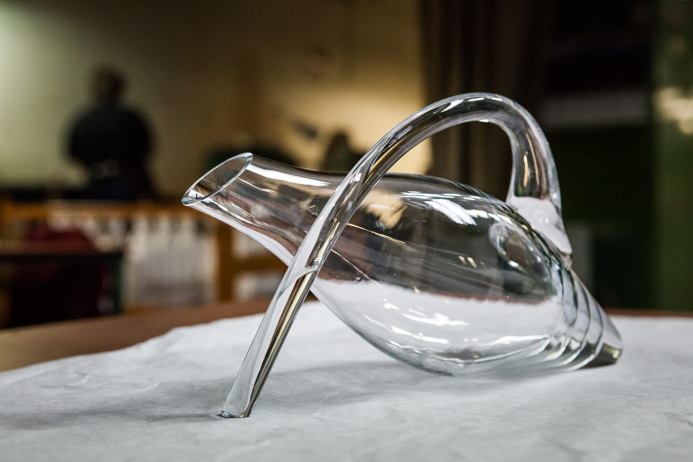 Po vychladnutí treba z výrobku orezať prebytočné kusy skla. Sklár obrúsi ostré hrany a skontroluje, či sa pri tom karafa nepoškodila.